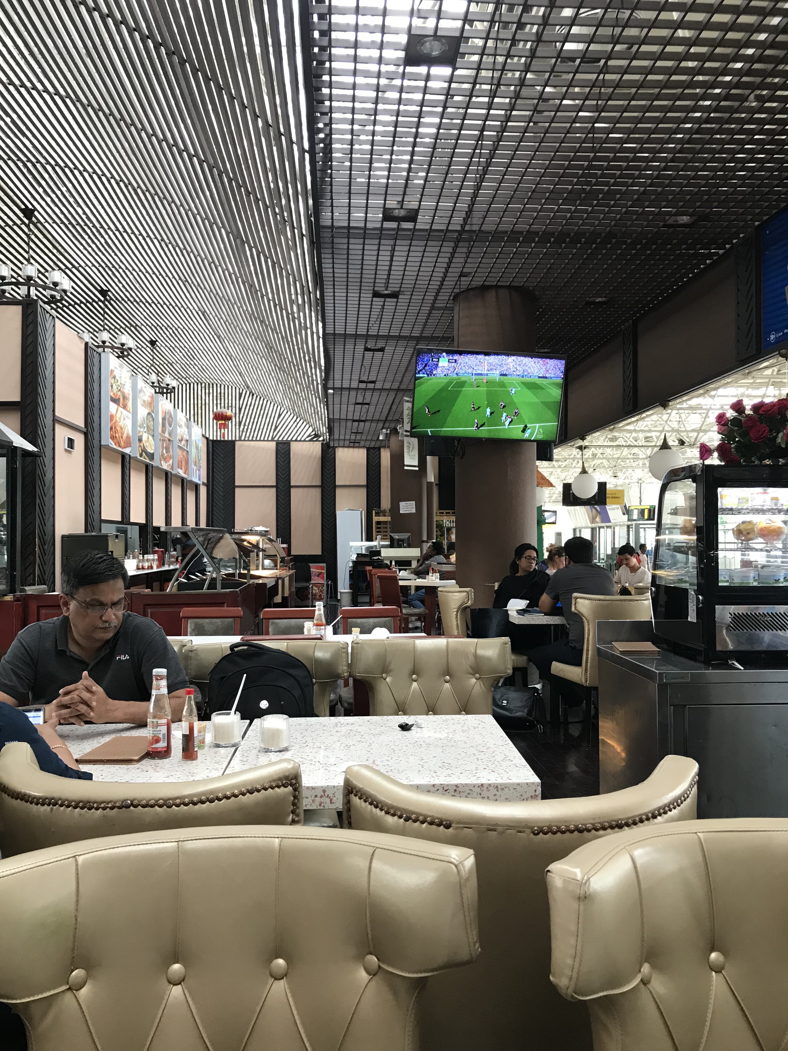 Very poor internet. Few seating/resting facilities. Not-so-clean toilets. People smoking outside the smoking area. Very crowded during the daytime. Lack of restaurant options. POOR SERVICE, really.