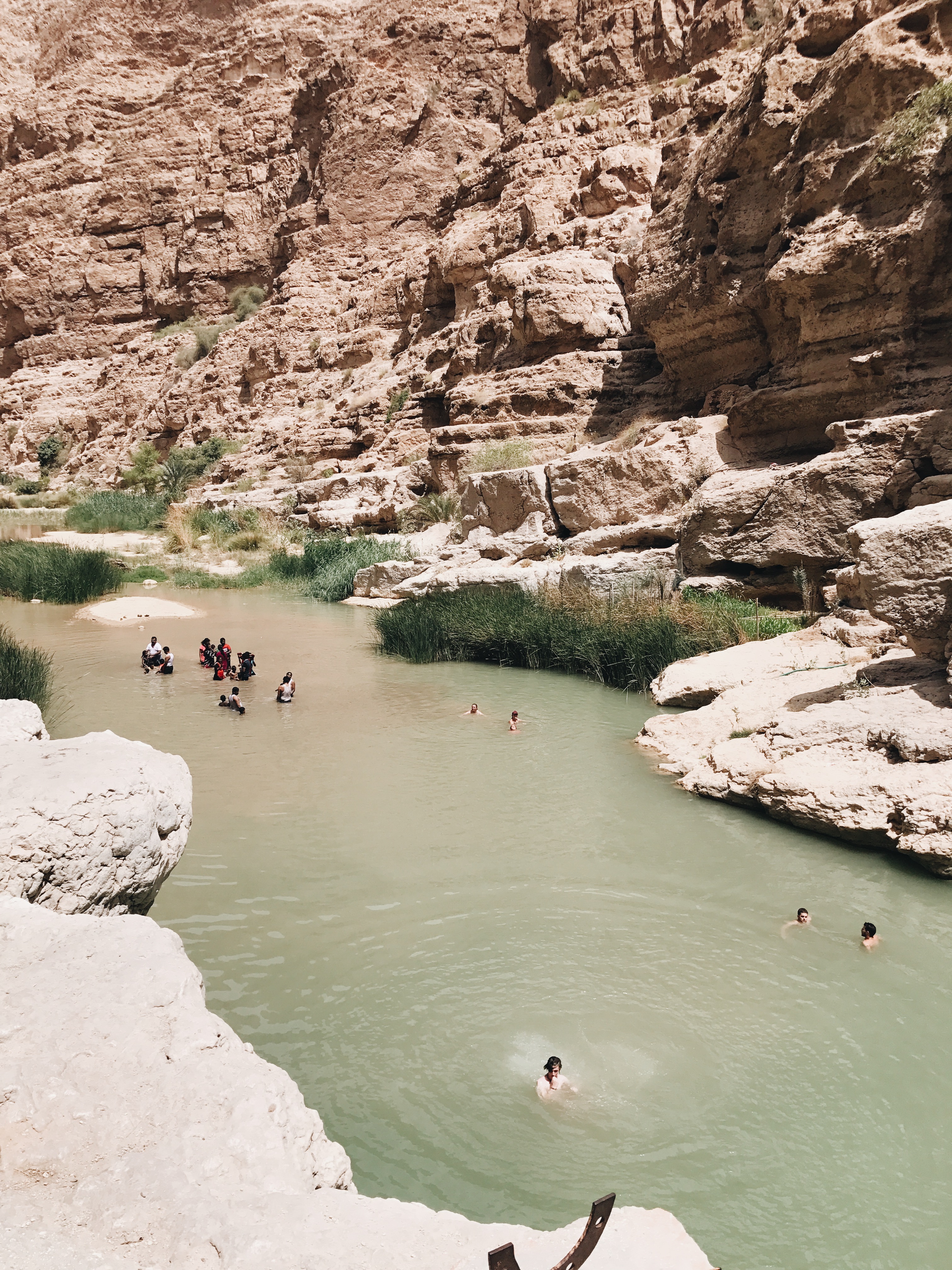 After refueling with some water, we then headed to a boat that got us to the other side for only 1 OMR. This is where the trailhead begins. The hike up the valley was breathtaking, but also EXTREMELY HOT. I swear to God, it was insane. As we walked along the trail, I couldn’t help but be amazed by how beautiful the scenery is. It nearly resembled the Grand Canyon (LOL NO KIDDING). We set aside invigorating dunks from time to time in the pool of water before adventuring upstream. But man, talk about high cliffs and clear blue water. Just. FFFF. Insane.